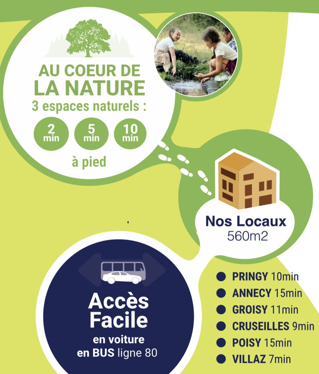 Depuis la rentrée 2025, nos locaux, d'une surface de 560m2, sont situés 11 route de Vernog à Fillières, soit à :
